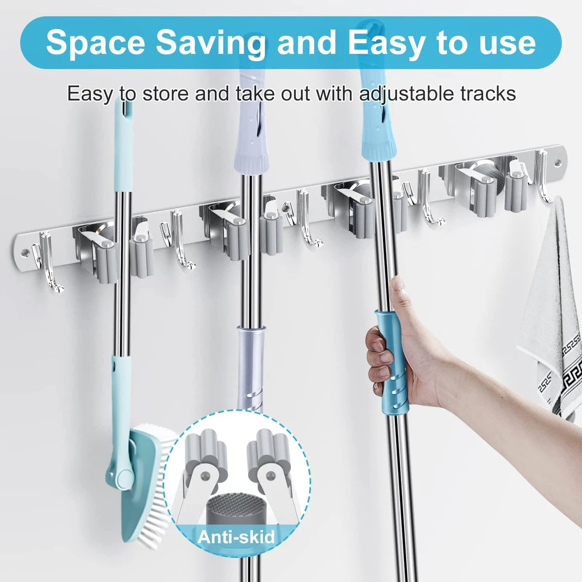 【Ruimtebesparend en gemakkelijk te gebruiken】 Met 5 rekken en 6 haken biedt deze bezemhouder-muurbevestiging in totaal 9 ophangposities voor uw gereedschap, waardoor uw ruimte maximaal wordt bespaard.