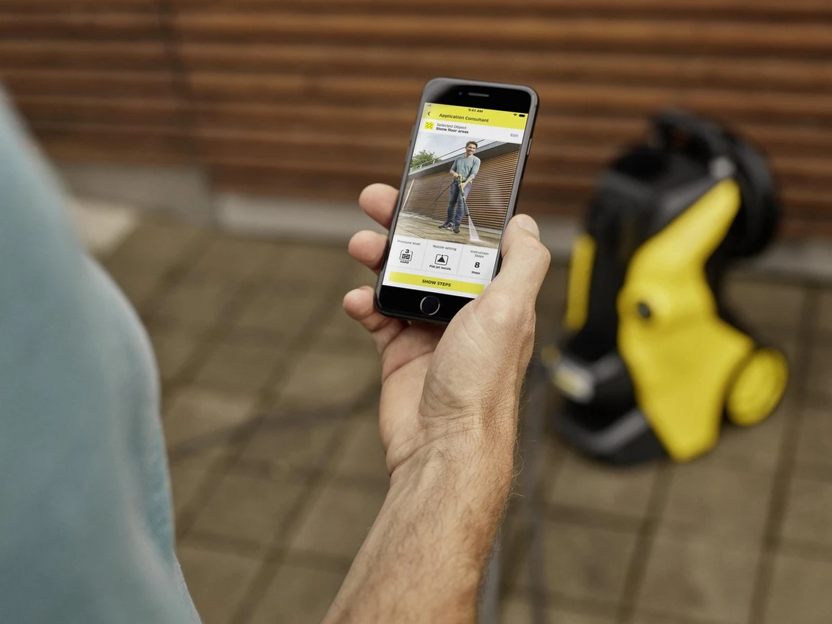 - Met de Kärcher Home & Garden-app word je een schoonmaakexpert. Profiteer van al onze Kärcher-expertise om perfecte reinigingsresultaten te bereiken. De app brengt via bluetooth de optimale druk over naar de hogedrukreiniger.