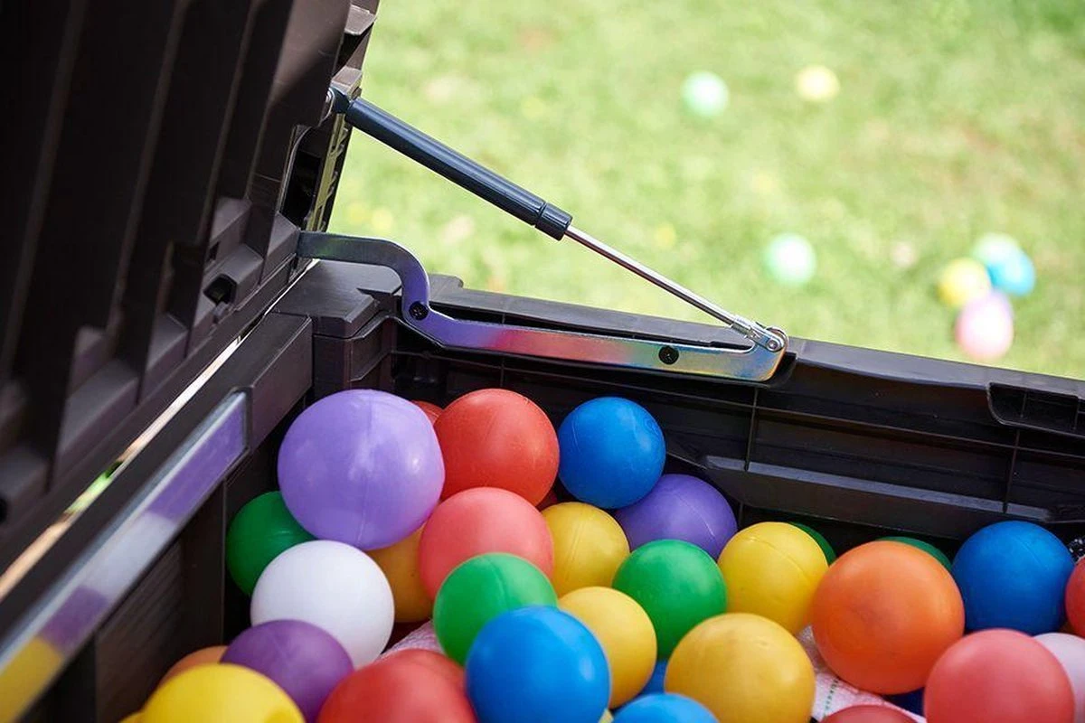 Met deze Keter Rockwood opbergbox 570L haal je het maximum uit je buitenruimte. Deze opbergbox is gemaakt van weersbestendig kunststof en houdt al je spullen droog en vrij van schimmel. Ga voor de strakke look van houten panelen, maar zonder het onderhoud. Je kunt tevens op het deksel met 2 volwassenen gemakkelijk plaatsnemen waardoor je veel ruimte bespaart. Dankzij het automatische openingsmechanisme gaat het deksel gemakkelijk open en dicht. De grendel is afsluitbaar. Deze box is zeer stevig en gaat jaren mee!
