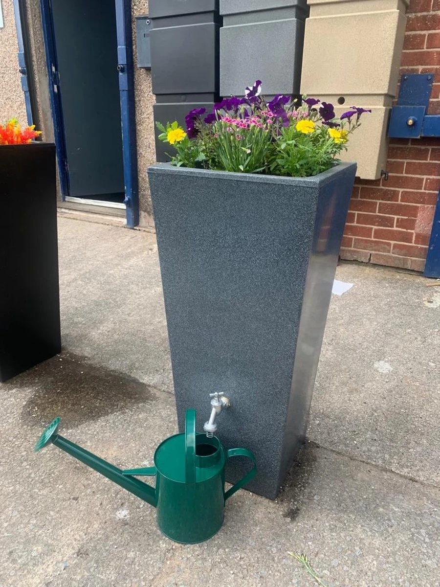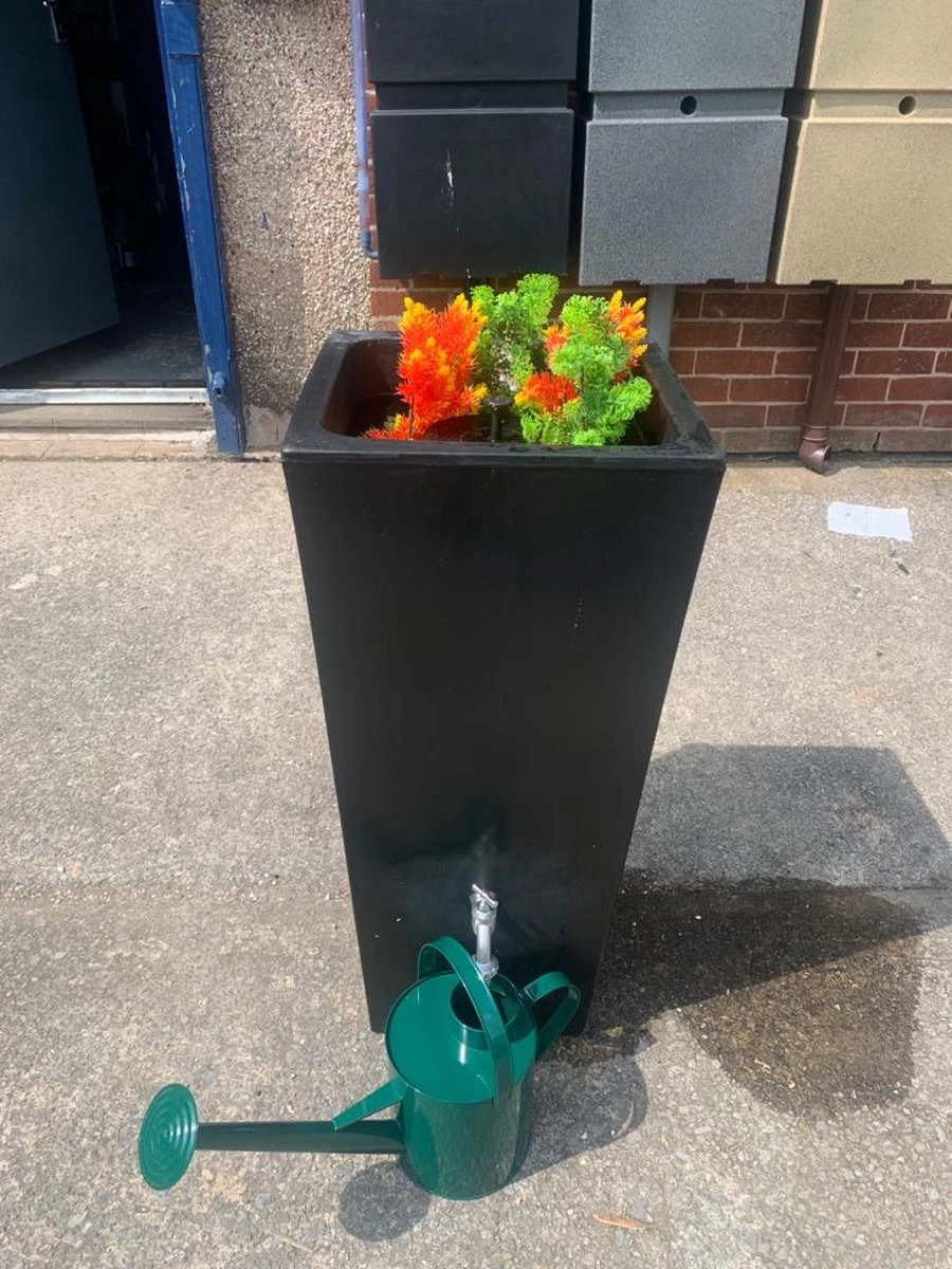 Deze moderne regenton is voorzien van een hoogwaardige messing kraan (3/4″ BSP), waardoor een gieter snel kan worden gevuld.