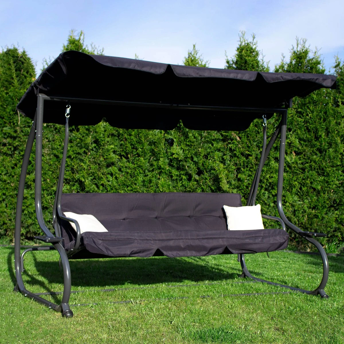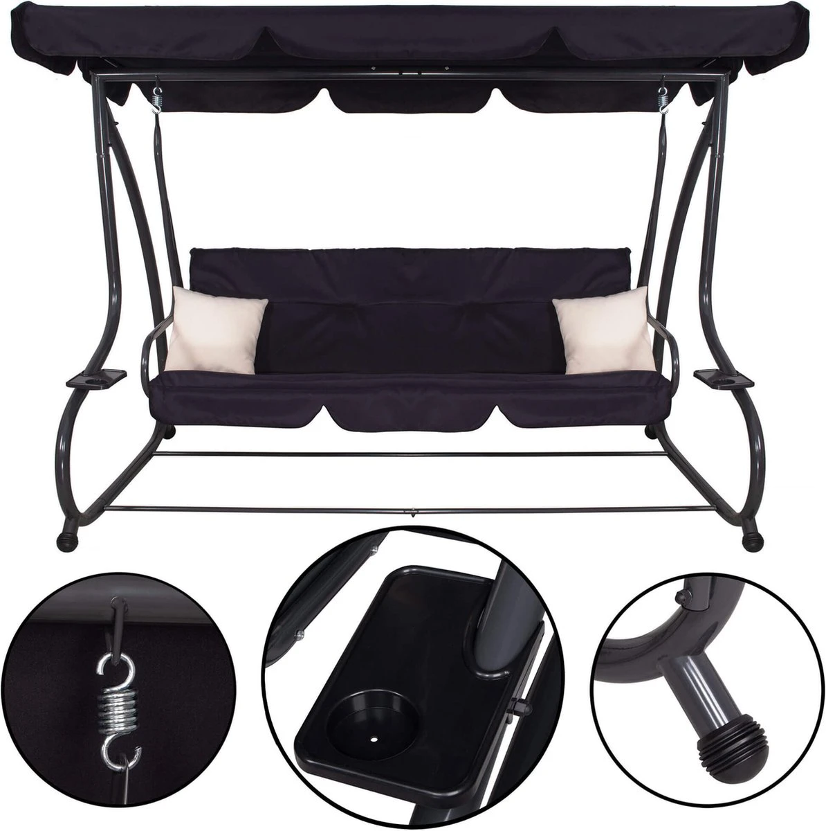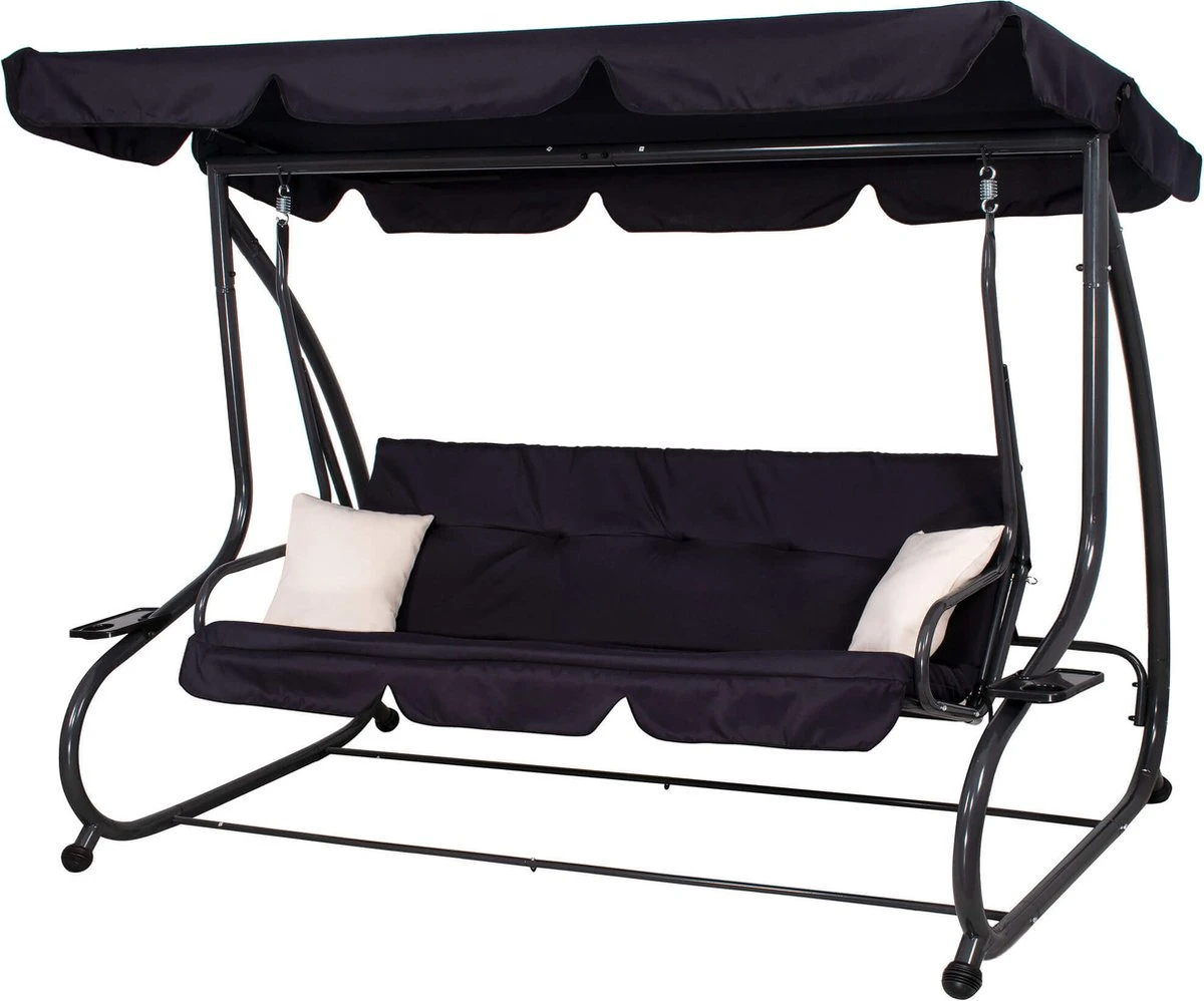Gun jezelf een heerlijk relaxmomentje in de schommelbank van Springos. De schommel is gemaakt van de beste materialen en is van hoogwaardige kwaliteit. Deze comfortabele 3-zits schommelbank wordt geleverd met 2 zachte kussens die niet alleen het gebruiksgemak verhogen, maar het ziet er ook nog eens gezellig uit.