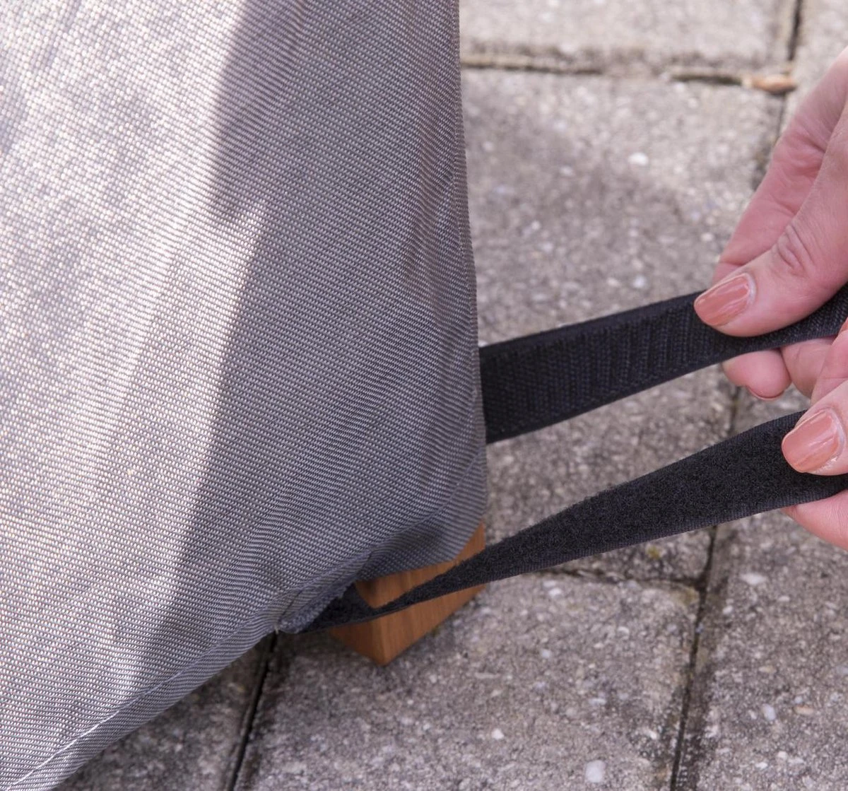De neutrale grijze kleur van de beschermhoes blijft optimaal behouden, dankzij de intense verfmethode van de stof. UV-straling maakt geen schijn van kans bij deze beschermhoes en de kleur zal dus niet veranderen na verloop van tijd.